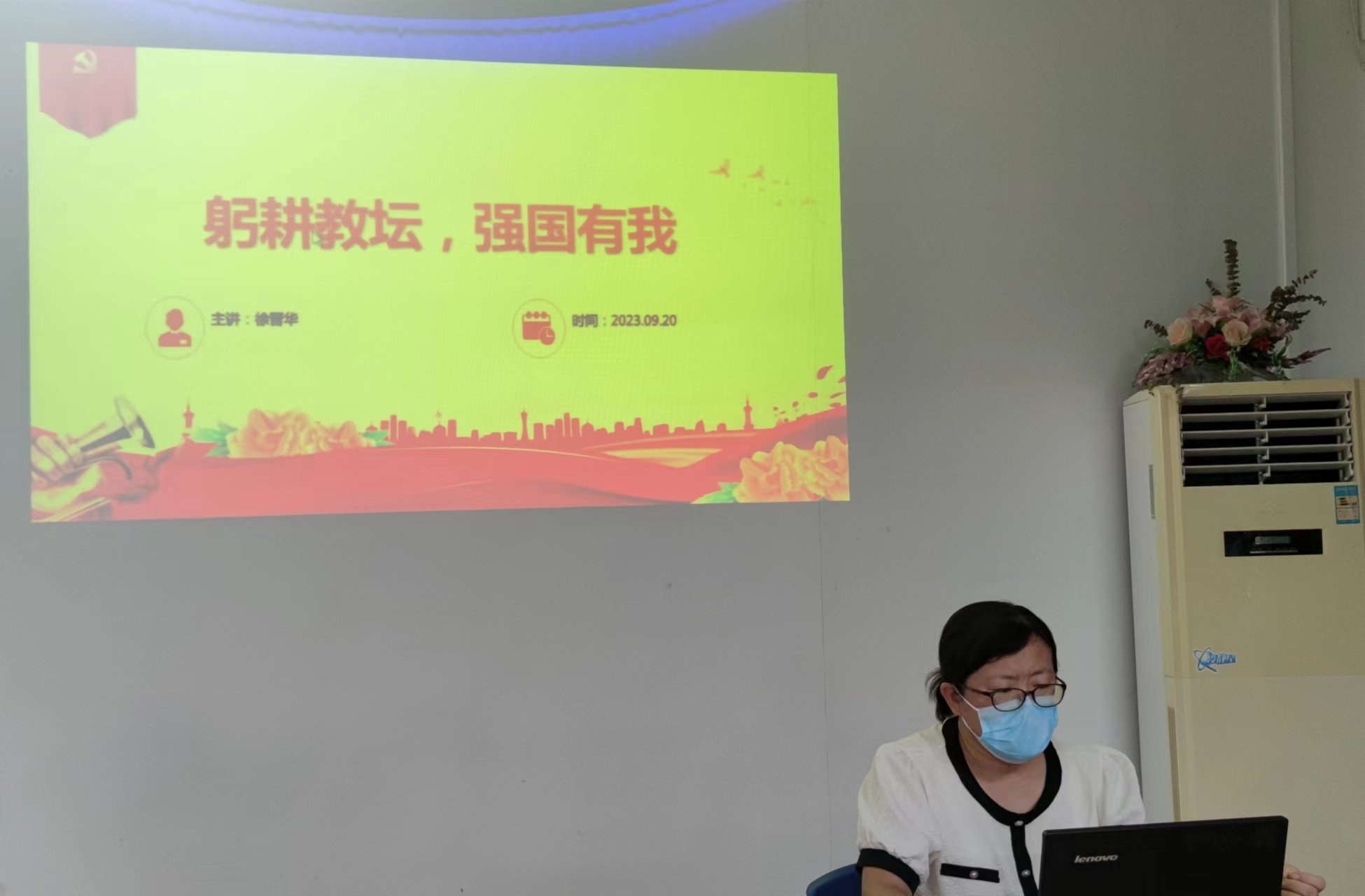 2023年9月20日下午,人文科学学院组织全体教师开展九月份集中政治理论学习,全体教师参会,会议由院党总支书记王奕主持。