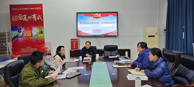 2025年1月14日上午,人文科学学院党总支在教学楼b207会议室召开党员大会进行党总支委员会换届选举,会议由党总支书记薛景主持。