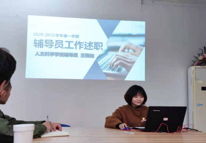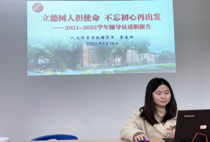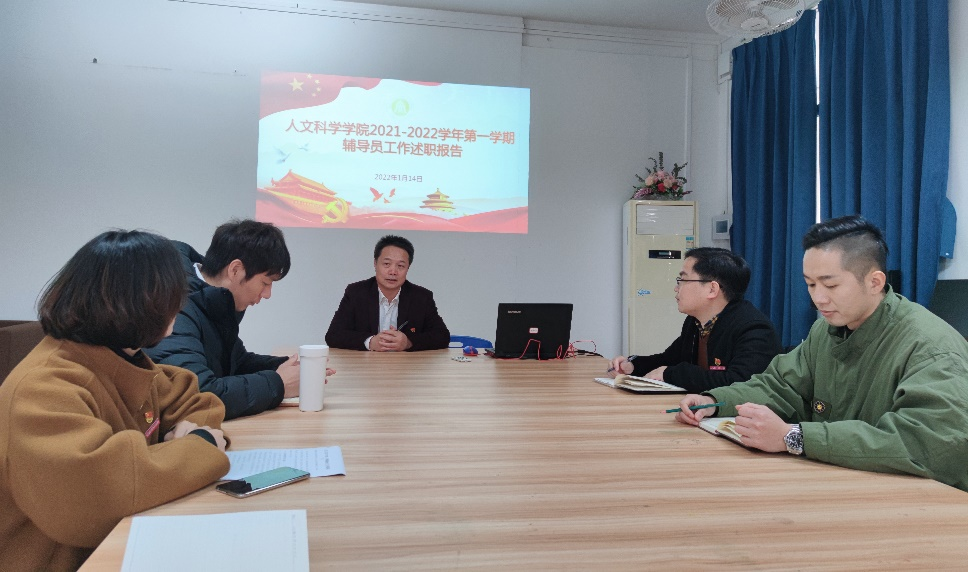 为深入落实立德树人根本任务,持续推动辅导员工作扎实有效地开展,2022年1月14日下午,人文科学学院在教学楼b-207召开辅导员工作述职大会,总结凝练工作特色,汇报展示工作成绩。参加本次会议的有院党总支书记王奕、院学生管理负责人何鹏及我院全体辅导员。校学工部副部长张良、校学生工作部心理健康教育与辅导中心主任罗香群莅临指导。会议由我院学生管理负责人何鹏主持。