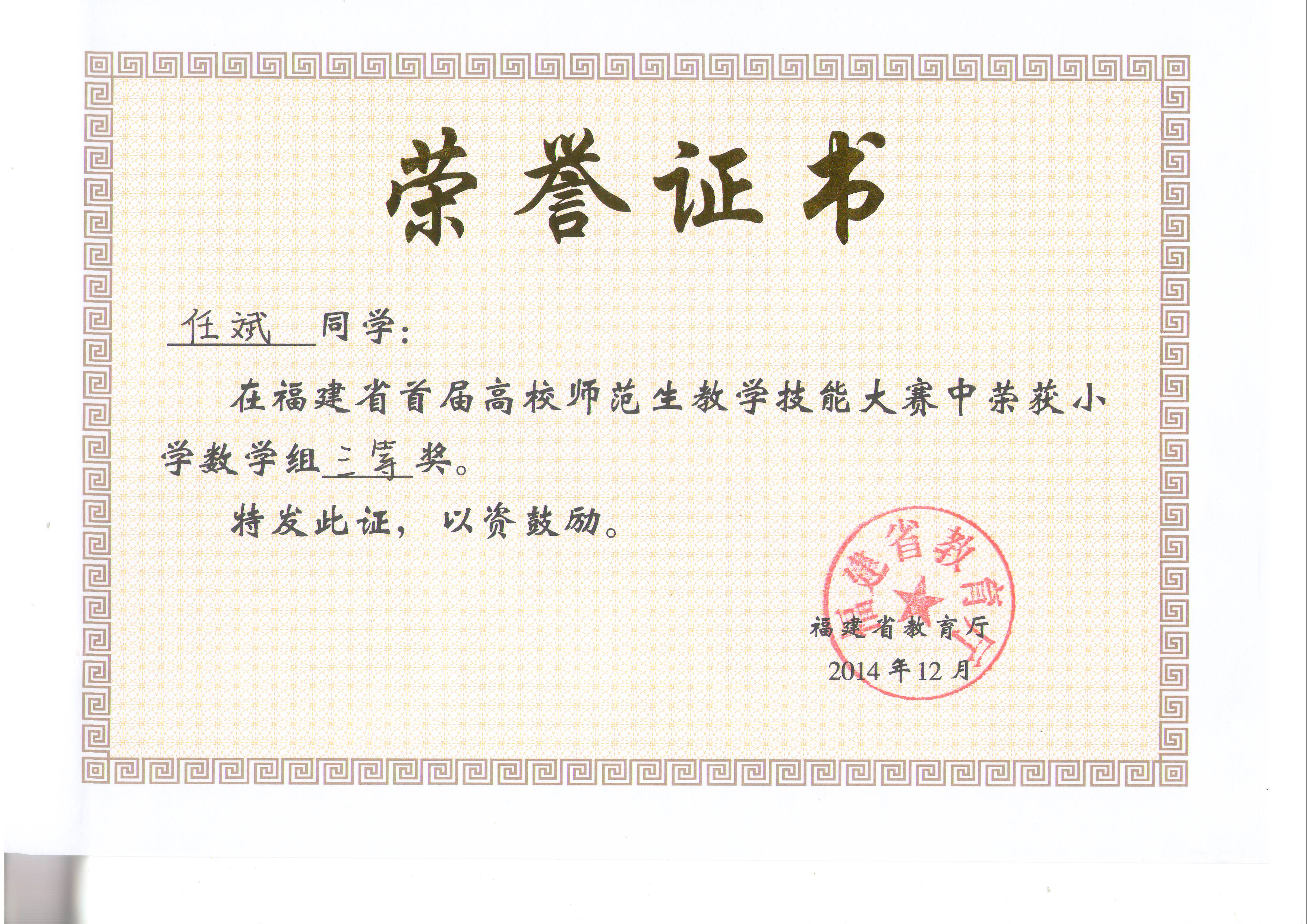 人文科学系学生在福建省首届高校师范生教学技能大赛中荣获一等奖1项、二等奖2项、三等奖3项、优胜奖3项: