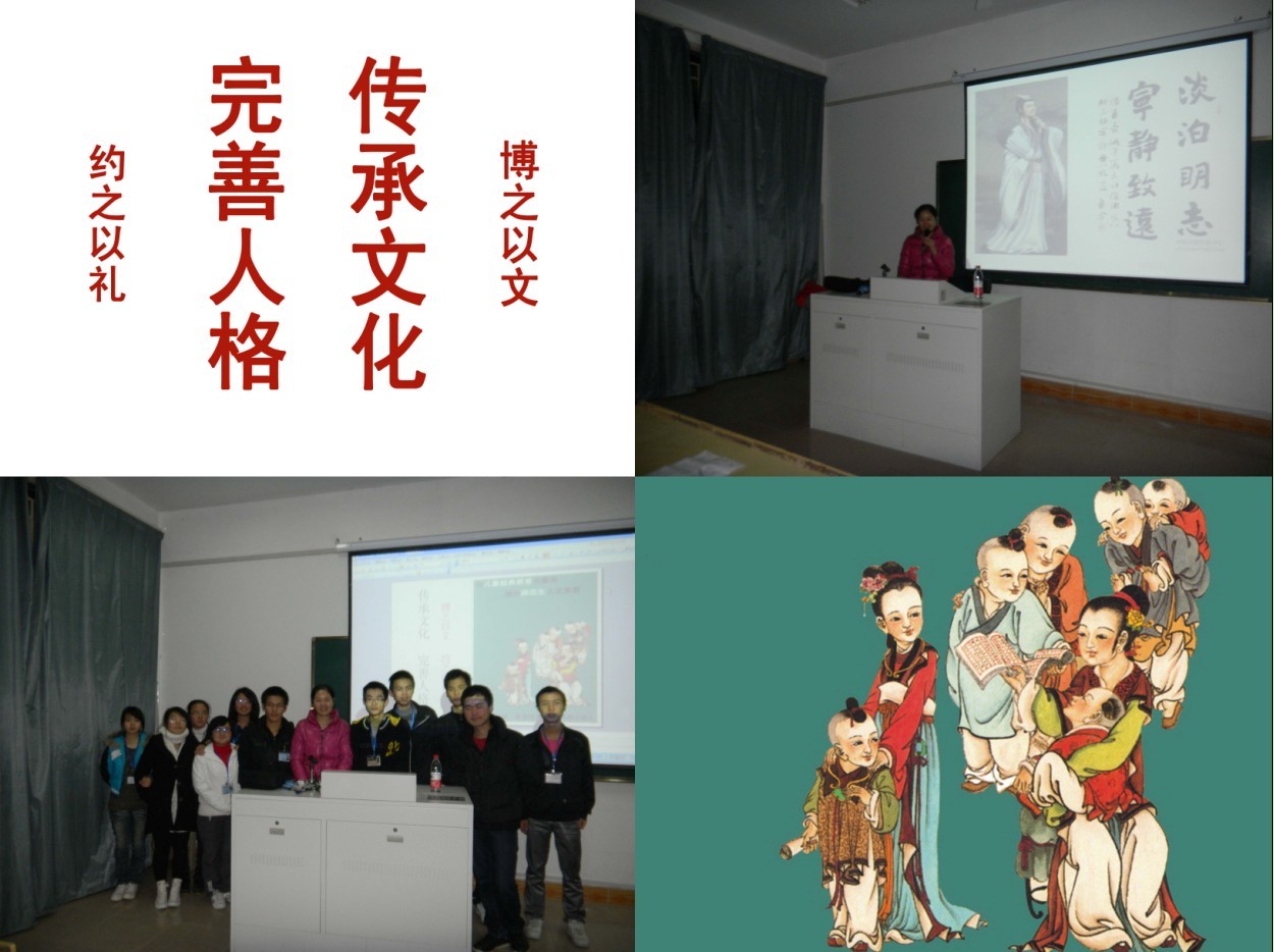 师范是培养教师的摇篮,我们的师范生是未来的教师,担负着培养一批又一批社会合格教师的重任,我们的教育对将来学生的志向、人格将产生长期而深远的影响。师范生不仅拥有广博的知识,精湛的教学技能,还应拥有深厚的文化底蕴,具备较高的人文素养。针对我院面对基础教育的师范性这一特点,胥文玲副主任的讲座从儿童经典教育的价值、动与静原理、教育环境、阶段及目标以及教材与教法进行阐述,最后指出提升师范生人文素养最有效方法之一是阅读儿童经典著作,如《三字经》《弟子规》《千字文》《道德经》,它们不仅高度凝练中国传统优秀文化的常识,而且蕴含为人处世的常道常理,为同学们一生奠定深厚的文化底蕴。讲座中,胥老师广博的知识和精湛的见解令学生有所收益,这是一场经典的中国传统文化的传播,为学生的文化积淀指引了积极的方向。