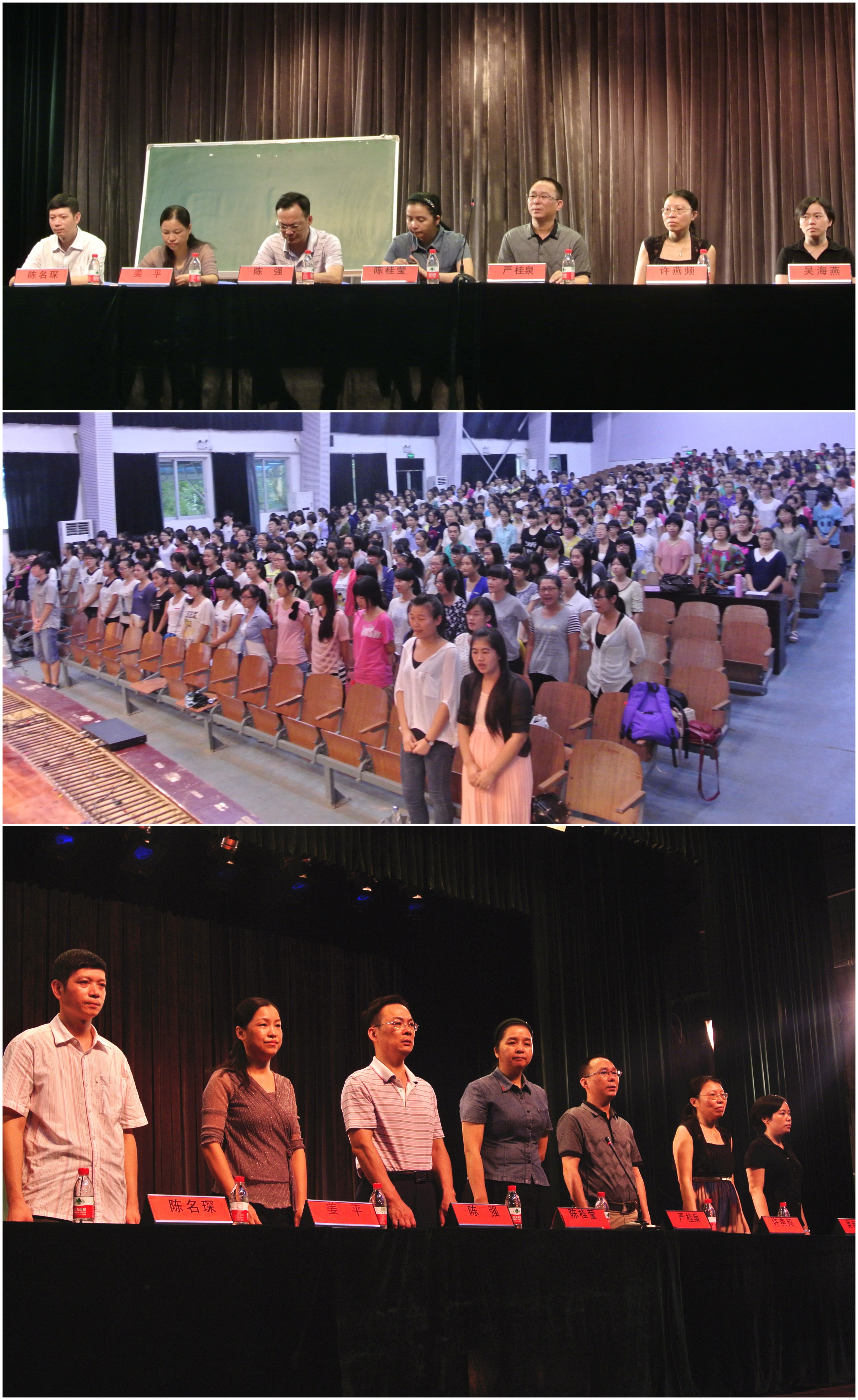 仪式以全体师生奏唱校歌的形式拉开序幕。首先由姜平老师对第五届师范生素质技能大赛中各项比赛规模及学生成绩做了简单的阐述,并对此类比赛的重要性进行强调说明。随后,严桂泉老师宣读了表彰决定并进行了表彰活动。由陈强主任总结讲话及宣布第六届师范生素质技能大赛启动。除此之外,林丽烟同学还与我们分享了经验交流,叙述了其"冰火两重天"的心路体验,强调了勤奋的重要性。最后,优秀学生代表许小庆和林泽邦同学进行了模拟课堂,展现了教师风采。