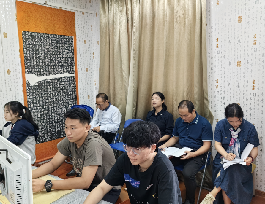 2023年10月8日上午,人文科学学院实训教研室丁峤老师立足中国书法楷书“点”画的教学,结合小学书法课程,带来了一堂有关中国书法楷书中“点”画写法的教学公开课。校教务处副处长叶圣军、曾群,人文科学学院院长姜平,副院长林榕、徐晋华及学院教师代表等前往观摩、指导。