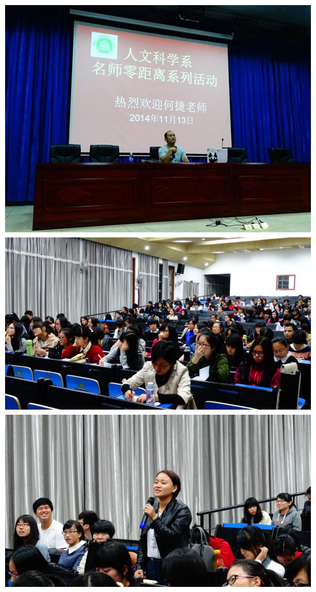 为提高实习生的教学管理能力,11月13日,我系特邀福州教育学院附属第二小学教师,福建省小学语文协会会员,全国青少年书法研究会会员、福州骨干教师讲学团成员何捷老师开设讲座《小学教学管理》,2012级全体实习生参加了本次讲座。