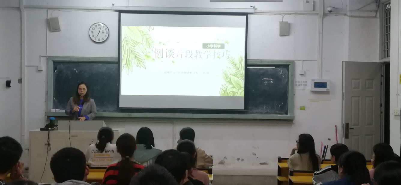 2018年11月12日晚,人文科学系邀请来自福州市台江区教师进修学校的小学科学教研员林岚老师在教学楼a103为2017级、2018级的科学教育专业的同学们带来了题为“例谈片段教学技巧”的讲座。