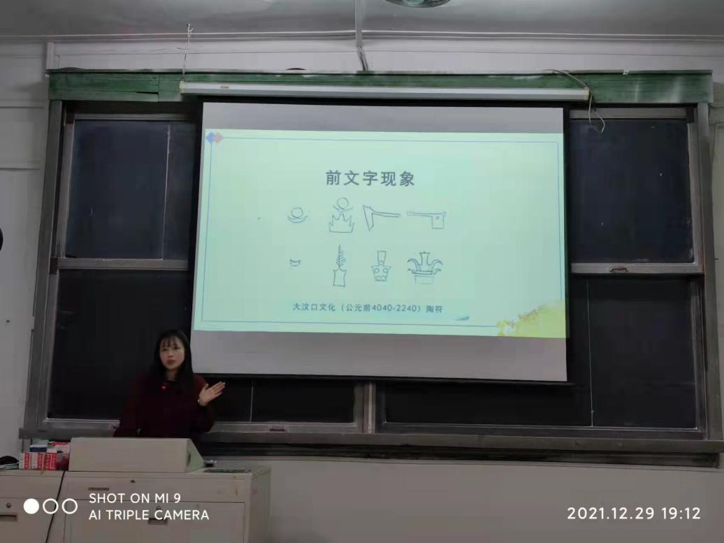 12月29日晚上,由“小学教师职业素养提升福建省应用文科中心”与人文科学学院主办的讲座“从汉字进入中华文化——基于教师视角的文化传承思考”在b607开讲。小学教育专业(综合文科教育)2021级全体学生聆听了中文教研室教师何燕娜老师的讲座。本次讲座由人文科学学院中文教研室主任陈名琛副教授主持。
