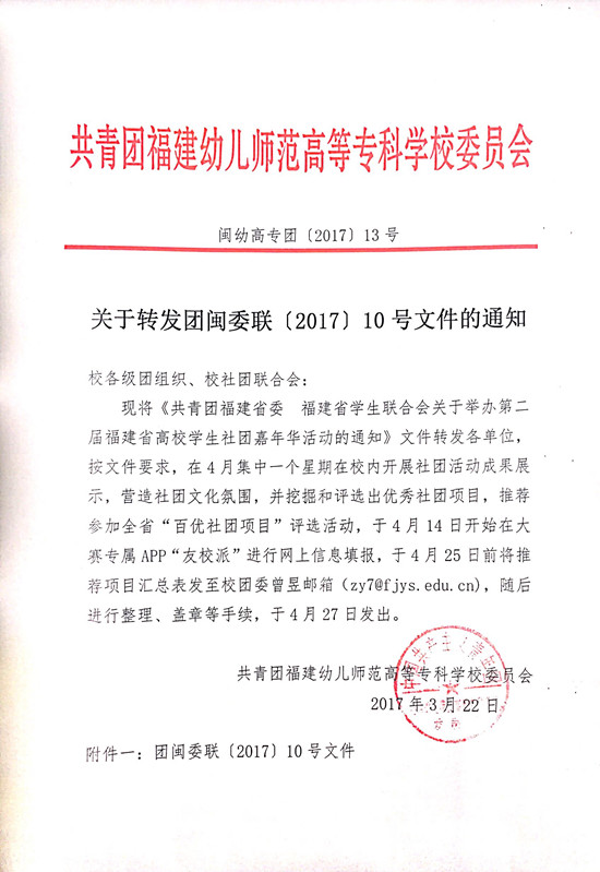 闽幼高专团〔2017〕13号关于转发团闽委联〔2017〕10号文件的通知-ag百家乐官网