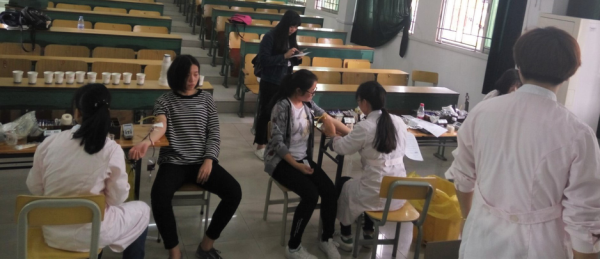 正午12点,同学们便早早来到献血现场,等候无偿献血的光荣时刻。在医护人员的悉心指导与帮助下,学生们仔细填写了《无偿献血登记表》,并自觉排队等候测血压、验血型、抽血化验,整个活动现场安静而有序。不仅如此,在青协志愿者的协助和学生的积极配合下,献血工作顺利完成,一股股青春的热流汇聚成爱的海洋。