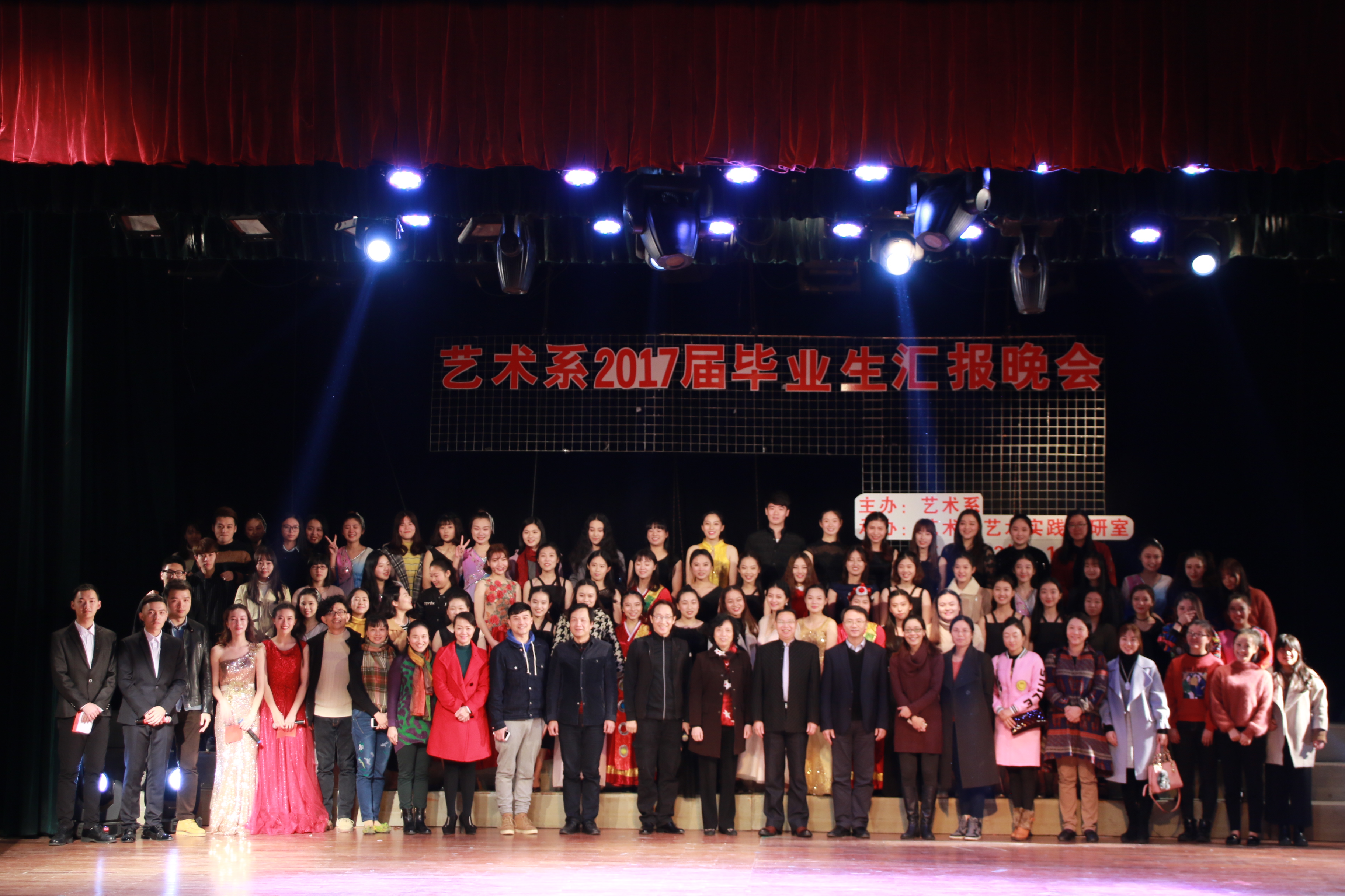 2016年12月27日晚七点,由艺术系主办,艺术系艺术实践教研室、艺术系12级艺教五专121及艺术系14级音教三专141承办的艺术系2017届毕业生汇报演出在我校礼堂隆重举行。莅临本次晚会的领导老师有:校党委鲍仕梅书记、郑健成校长、副书记、党工部黄晖部长、培训中心薛少红主任、招生就业办公室陈秉龙主任以及艺术系的领导老师们。