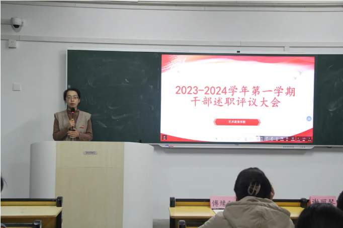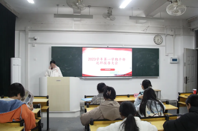 岁月常易,华章日新。为全面回顾和总结2023—2024第一学期工作总结,展望谋划往后重点工作,进一步加强学生干部队伍建设,提升履职能力和向心力,更好的促进学院发展。2024年1月17日晚上,我院于a教学楼203以现场汇报的形式召开了学年述职报告总结。学院党支部书记谢丽琴、团总支书记傅缘阳及全体团总支、学生会、自律会各部门负责人、2023年青马工程骨干培训班学员出席本次会议,会议由学生会主席冯钰雯同学主持。