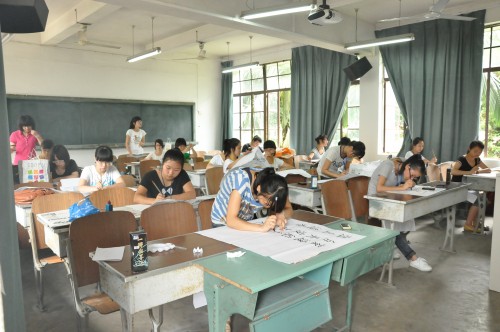 为了深入传承中国传统书法艺术,增强学生对中国国学的喜爱以及提高学生文化素质。2012年5月30日由校团委社团联合会主办的学生书法大赛在教学a楼成功举行。