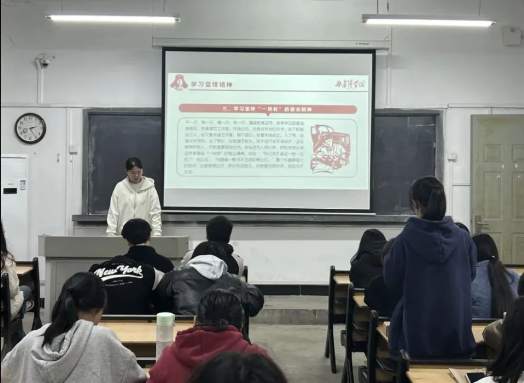 本次团课主要从雷锋同志的生平故事、名言以及如何传承雷锋精神等角度对雷锋精神进行深入学习。在本次团课中,各班主持人通过对雷锋同志生平故事的讲述,让同学们对雷锋精神有了更加深刻的认识,进一步为实现中华民族伟大复兴的中国梦凝聚青年力量。