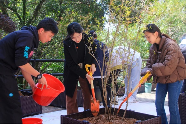 春回大地,万物复苏,正是植树好时节。为深入学习贯彻习近平总书记关于引领推进生态文明建设,推动绿色发展,共建美丽中国的重要思想,2024年3月12日植树节来临之际,校团委联合学工部、人文科学学院党总支在仓山校区教学b楼“党建劳动实践”平台开展“党建‘植引绿色希望,劳动共‘树’美好未来”植树节主题活动。校党委副书记邹雄伟、学工部部长薛景、校团委书记胡华荣、人文科学学院党政班子成员,团员干部代表及师生志愿者代表共100多人参加本次活动。