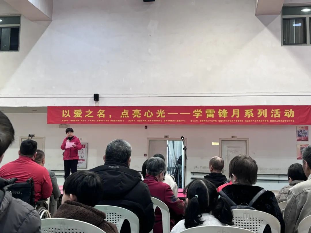 2025年3月1日,应福州市橄榄树公益服务中心邀请,我校青年志愿者协会参与协办了由福建省残联指导,福建省省盲人协会、特奥委员会主办,福建省残疾人体育运动管理中心支持的“以爱之名,点亮心光"福建省盲人协会学雷锋月系列活动。