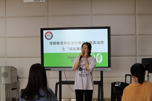 为了提高学生的语言教学技能,强化学生讲故事的基本功训练,学前教育学院实践教研室举办了“学前教育专业师范生教学能力创新大赛之2020级学生讲故事比赛”。本次比赛分为初赛和决赛两种形式,初赛于5月16日开始在班级中进行选拔,要求参赛学生自选自己感兴趣且适合学前儿童的故事读物,故事取材要符合学前儿童的年龄特征和心理特点,要求能够提高幼儿的学习兴趣,对幼儿具有一定的教育作用。