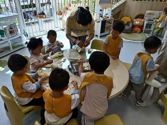 在组织劳动活动时,同学们不仅关注幼儿的操作安全,还会根据不同年龄段幼儿的发展特点调整指导方式:对小班幼儿采用“手把手”示范,对大班幼儿则鼓励自主探索、互助合作。这种“因龄施教”的实践,让同学们切实体会到托育工作的专业性与细致性。同学们还聚焦“生活实践教育”,带领幼儿开展“我的小手真能干”劳动主题活动,通过拨包菜、摘四季豆等实践,让幼儿在动手操作中感受劳动乐趣,也让同学们对劳动教育有了更深刻的理解。