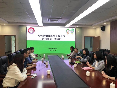 2021年3月19日上午,学前教育学院开展招生就业与继续教育工作调研,学院院长吴丽芳、副书记陈孟增、副院长肖英娥和就业辅导员们参加此次调研会。