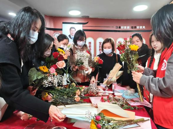每位女性都是恣意盛开的鲜花,绽放着属于自己的专属色彩。在志愿者们的指引下,大家探索花卉的色彩搭配,一边学习技巧,一边以花为礼,交流心得,创造出富有个性与生命里的花束作品,现场氛围温馨而愉快。一束束手工花束的情感表达也女性们对生命和美的热爱和追求。
