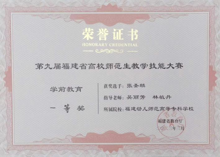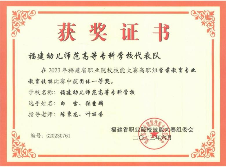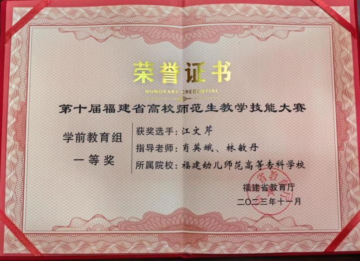 2023年福建省职业院校技能大赛高职组学前教育专业教育技能比赛获团体一等奖