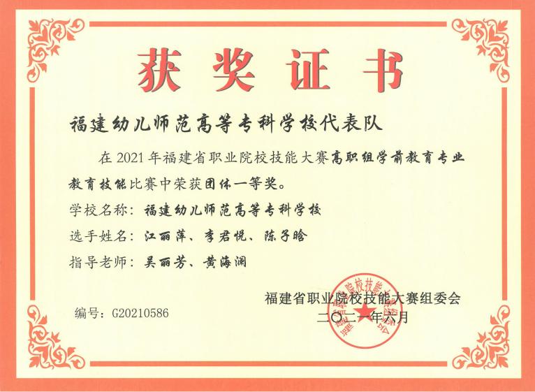 2021年福建省职业院校技能大赛高职组学前教育专业教育技能比赛获团体一等奖