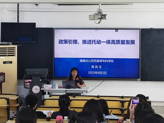 为深入贯彻国家托育服务政策精神,助力福建省中职幼儿保育类骨干教师精准把握托幼一体化发展趋势,2025年9月2日,福建幼儿师范高等专科学校党委委员、副校长,早期教育专业带头人陈凤玉副教授,为福建省骨干教师教育教学能力提升研修班(中职幼儿保育类)学员开展《政策引领,推进托幼一体高质量发展》专题讲座。