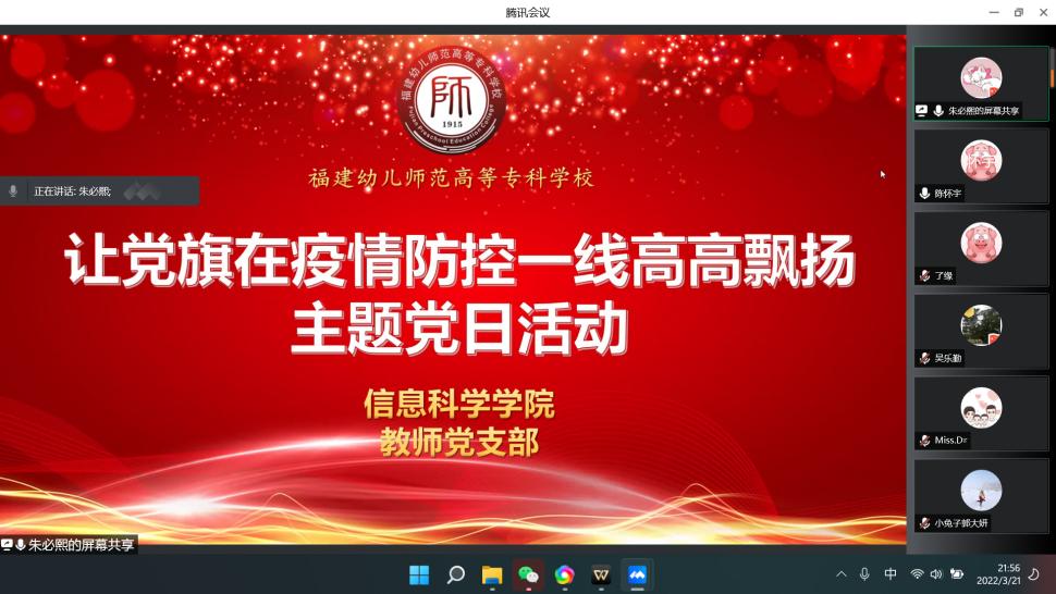 教师党支部联合现代教育技术教研室在3月21日开展"让党旗在疫情防控一线高高飘扬"主题党日活动,向学院教师发出了"坚持立德树人,坚定战疫信心;坚守教育初心,落实育人责任;传授理论知识,践行责任担当;善用信息技术,坚守居家课堂;强化关心关爱,做到安心学习;加强督导检查,保障教学质量"的倡议。