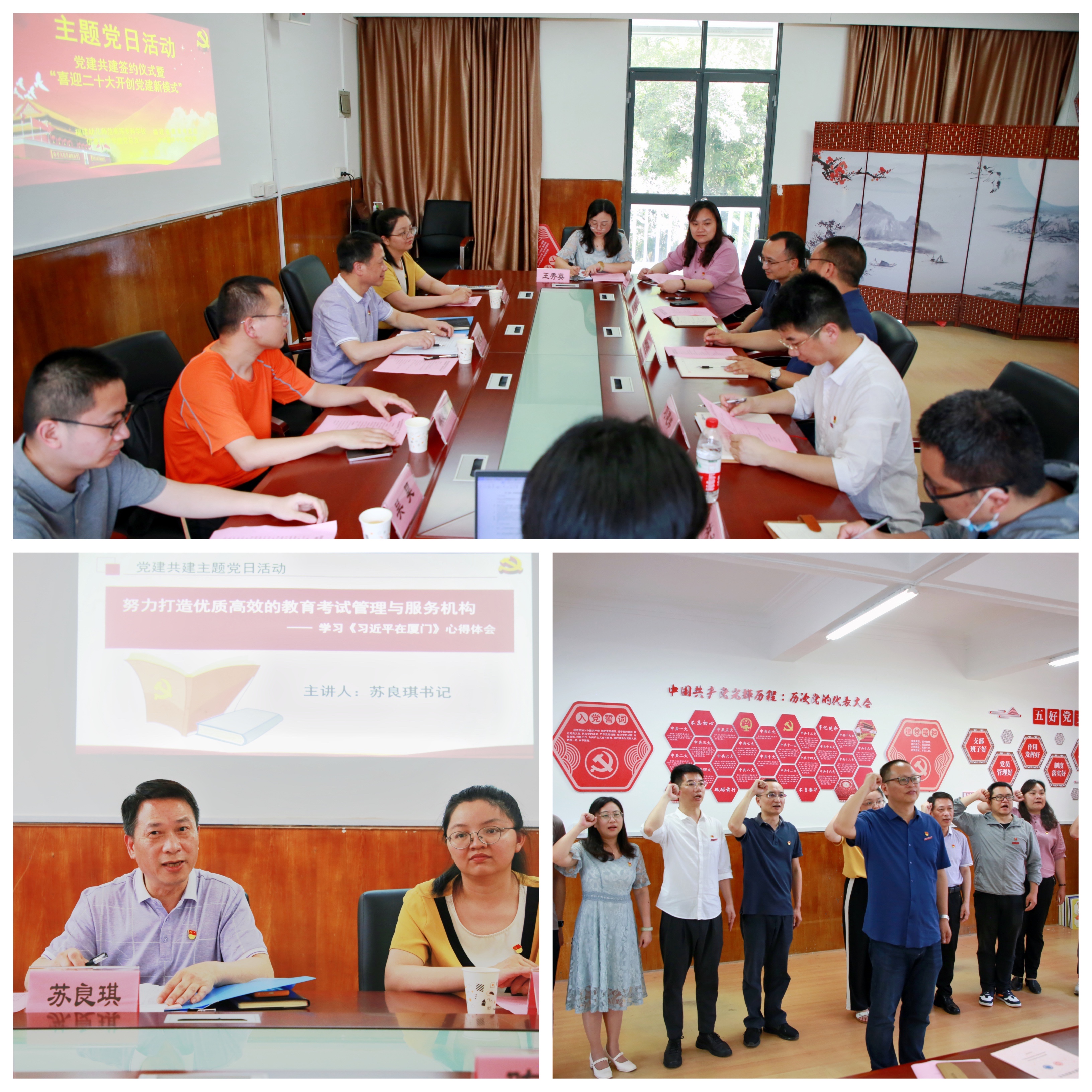 6月1日下午,省教育考试院考试服务中心党支部、福建幼儿师范高等专科学校信息科学学院党总支联合开展主题党日活动,集中学习《习近平在厦门》采访实录,并重温入党誓词。