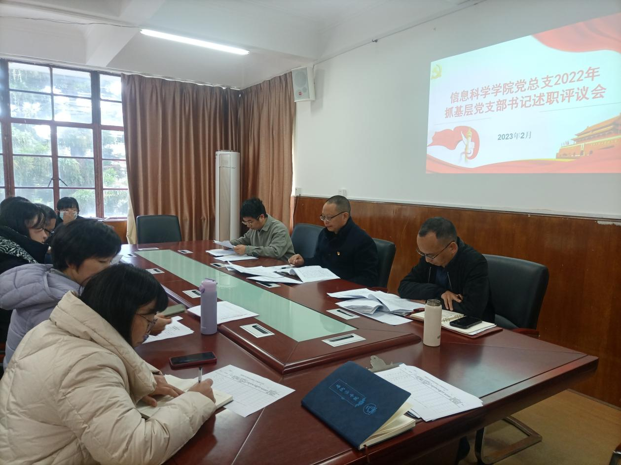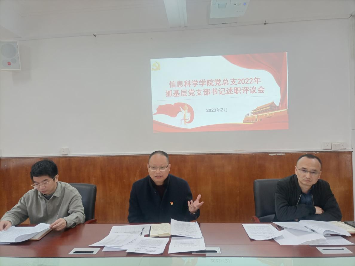 2月22日,信息科学学院党总支召开2022年基层党支部书记述职评议会议,全面盘点2022年党支部书记履职情况,共同展望2023年学院党建工作的努力方向。信息科学学院党总支班子、各党支部书记、部分教师党员参加会议,会议由余深焰书记主持。