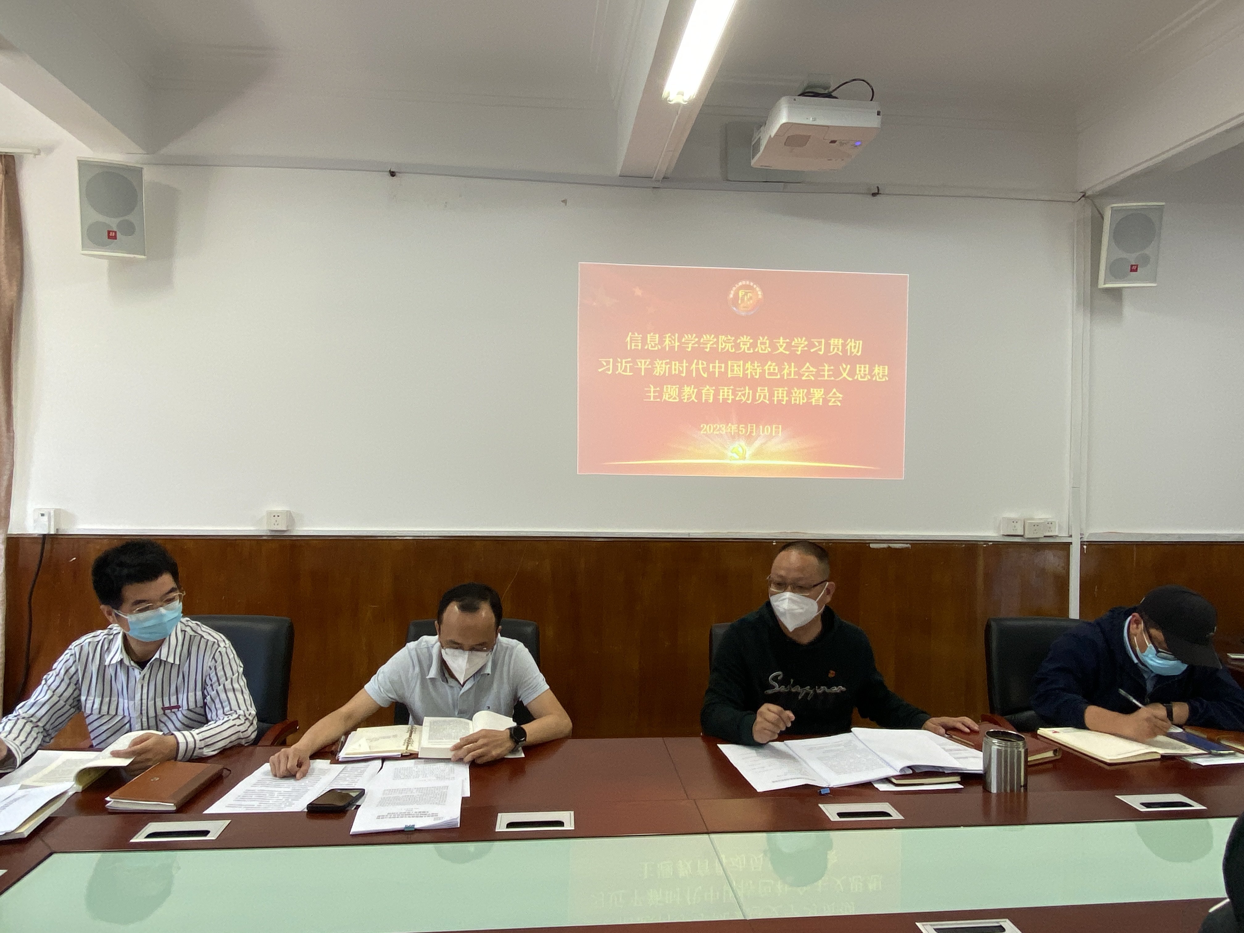 5月10日下午,信息科学学院党总支持续开展学习贯彻习近平新时代中国特色社会主义思想主题教育学习会。会议由学院党总支书记余深焰主持,学院全体党员共同参加。