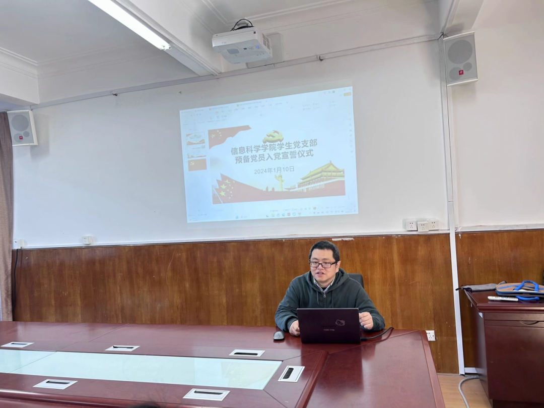 为进一步教育引导新发展党员铭记入党初心、强化党员意识、坚定理想信念。信息科学学院学生党支部于2024年1月10日中午在系办306会议室举行入党宣誓仪式。学院所有学生党员和入党积极分子参与仪式,活动由林承杰老师主持。