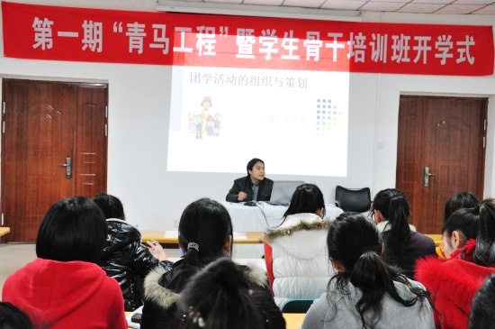 开班仪式结束后,院团委胡华荣副书记为学员讲授了第一讲“团学活动的组织与策划”专题讲座。他在报告中他指出开展好团学工作可以交流情感,打造团队精神;是拓展知识,培育实践和创新能力的有效途径;是展示才华,服务社会的舞台。他从团学活动的创意设计、方案撰写、组织实施、总结提高等几个方面讲述了做好团学活动的方法和步骤。