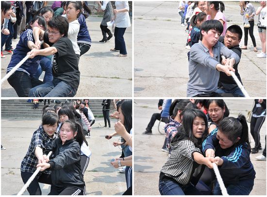 4月15日中午,拔河比赛院篮球场进行。各系的拔河队都是经过层层的筛选组建产生,比赛中由各系派出的精英们鼓足了劲,涨红了脸,抓紧了绳,全力以赴,奋力争夺,场上的队员卯足了劲,场边的拉拉队更激动澎湃,加油声、叹息声、欢笑声此起彼伏,那场面好不热闹!拔河比赛时间虽然短暂,但在其过程中充分体现了同学们团结友爱、顽强拼搏、不服输不言败的精神风貌,每一支参赛队伍都全力以赴,赛出了顽强的精神、赛出了团结的风尚!经过4场角逐,最后人文科学系勇夺第一名,艺术教育系第二名,学前教育系、外语系分列三、四名。