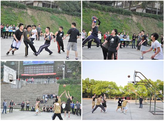 4月7日下午4点30分, “4 3”篮球赛在校篮球场率先拉开了战幕。比赛还未开始,来自各系的参赛队员们早已磨拳擦掌、跃跃欲试,比赛随着裁判员老师的一声哨响正式开始。比赛中各参赛队员配合默契,相互鼓励帮助,各队之间也是友好和谐,把友谊和交流放在首位。男生帮女生加油,女生给男生鼓劲,激烈的赛事,加油呐喊的观众,辛勤服务的工作人员,所有的这些构成一幅紧张、激烈、精彩、和谐的场面。