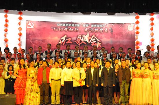 五月的歌声,青春洋溢,永不褪色;五月的信仰,坚定执著,薪火相传。为庆祝建党90周年暨“五四”运动92周年,弘扬“五四”精神,教育青年学生铭记党恩共抒爱国情怀, 牢记青春使命,2011年5月4日下午2:30,院团委在仓山校区礼堂开展了“班班有歌声,永远跟党走”红歌会活动。院党委林雨书记、学院陈华院长、郑健成副院长、徐京生副院长等学院领导和各机关处室、系部领导老师出席了本次活动。