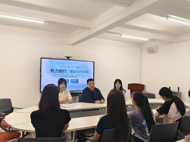活动创新设置师生互动环节,构建双向育人新场景。学前教育学院辅导员与学子共探学习方法与生涯规划,在思想碰撞中明晰奋斗方向;艺术教育学院通过“实践经历分享时间平衡之道”等话题讨论,深化学生对全面发展理念的认知;外语教育学院以视频展播形式呈现国家奖学金获得者张艳婷等人“直挂云帆济沧海”的职业理想,实现跨时空的榜样对话。多维度的交流互动既彰显了教师队伍的育人担当,也让“奋斗”从抽象概念转化为具象行动指南。