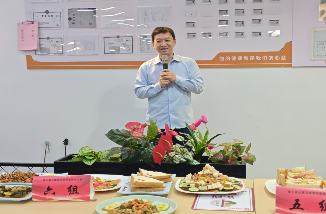 章涛在总结讲话中,高度评价了以冷菜厨艺大赛这一独特形式开展劳动实践育人的深远意义。他充分肯定了同学们的辛勤付出与不懈努力,以及他们在“食力”与“实力”方面的出色表现,他希望同学们将本场比赛展现出的创造力和对厨艺和美食的热爱延伸至学习生活的各个层面,鼓励同学们在劳动中成长,在实践中提升综合素质,成为全面发展的高素质人才。