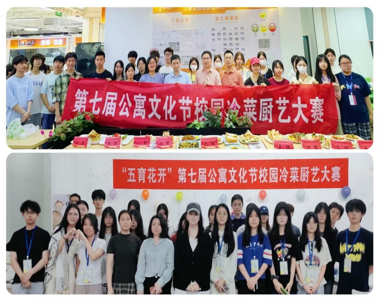 2025年5月28日下午,第七届公寓文化节——“五育花开”校园冷菜厨艺大赛在仓山校区大食堂二楼和金山餐厅一楼同步举行。本次活动通过劳动实践促进德、智、体、美、劳“五育”融合,丰富学生校园生活。学生工作部副部长(主持工作)章涛老师、学生工作部副部长张良老师、学生工作部副部长严艳丹老师、学生工作部丁华毅老师、艺术教育学院陈佩伶老师及全体生活指导老师出席活动,与参赛选手和观众共同见证了一场别开生面的厨艺比拼。