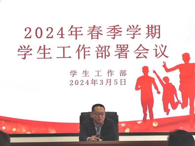 为全面贯彻习近平新时代中国特色社会主义思想,落实立德树人根本任务,推进“时代新人铸魂工程”,3月5日上午,学生工作部组织召开2024年春季学期学生工作会议。校党委副书记邹雄伟出席会议,学生工作部全体成员,各学院学生工作负责人、全体辅导员、生活指导老师参加会议。会议由学生工作部部长薛景主持。