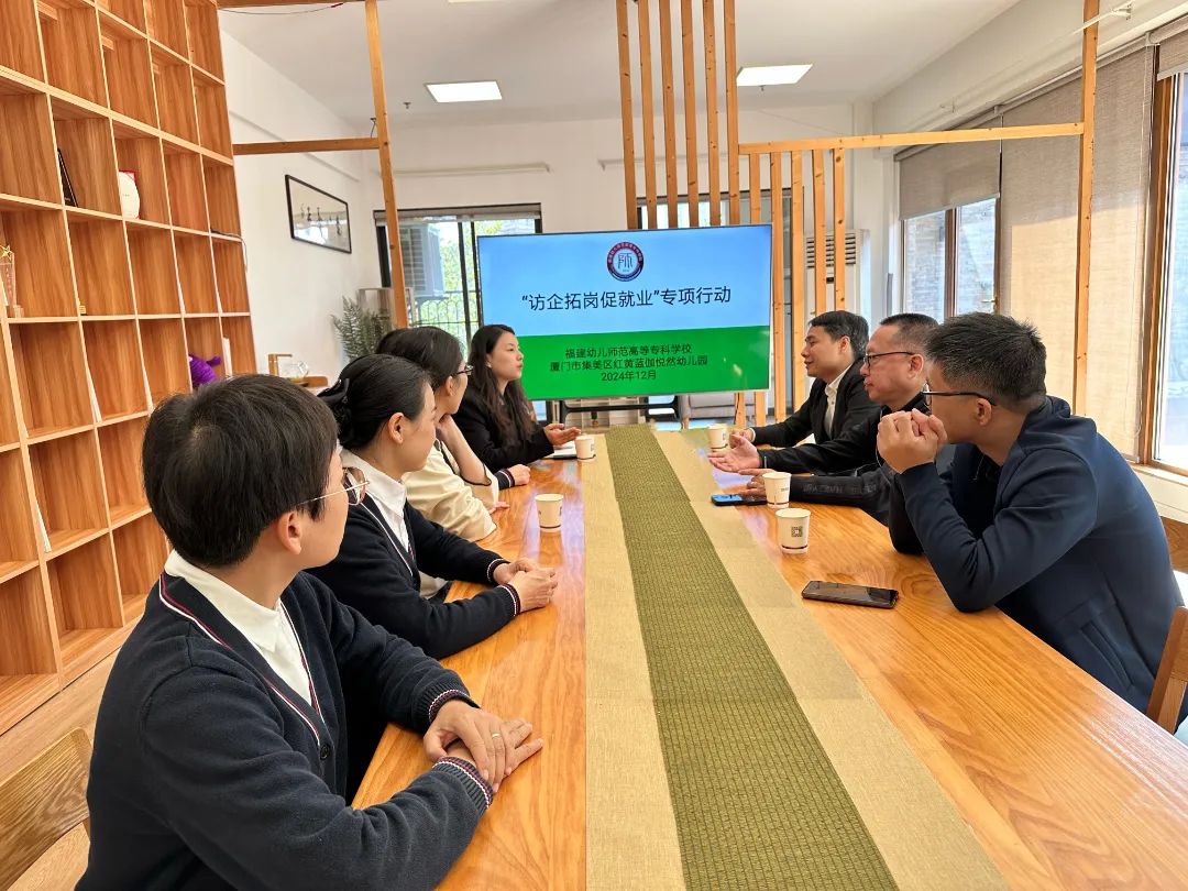 2024年12月5日,校党委副书记邹雄伟一行前往厦门走访企业,开展访企拓岗促就业专项行动。期间,先后深入厦门翔安教育集团、厦门集美红黄蓝伽悦然幼儿园进行走访调研。