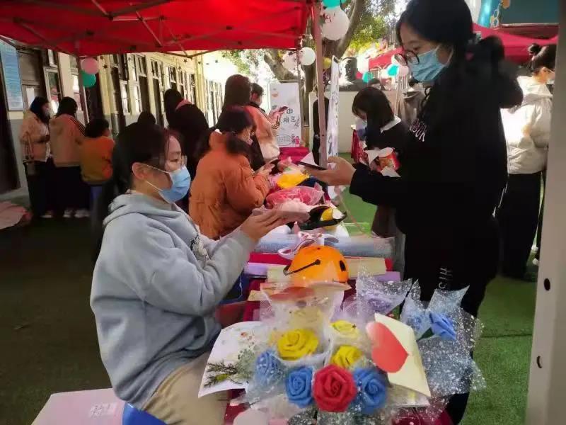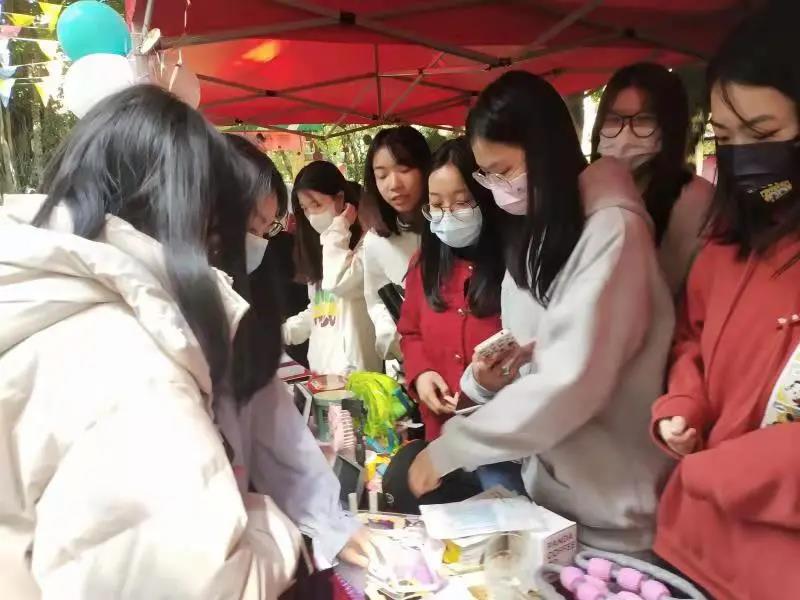在青创集市上,不仅保留了传统的旧货交易、公益活动,还有不少学生们展示和销售自己的原创文创产品近200 余件,吸引众多学生前来“赶集”。现场活动气氛热烈,创业学生们争相介绍自己的产品。