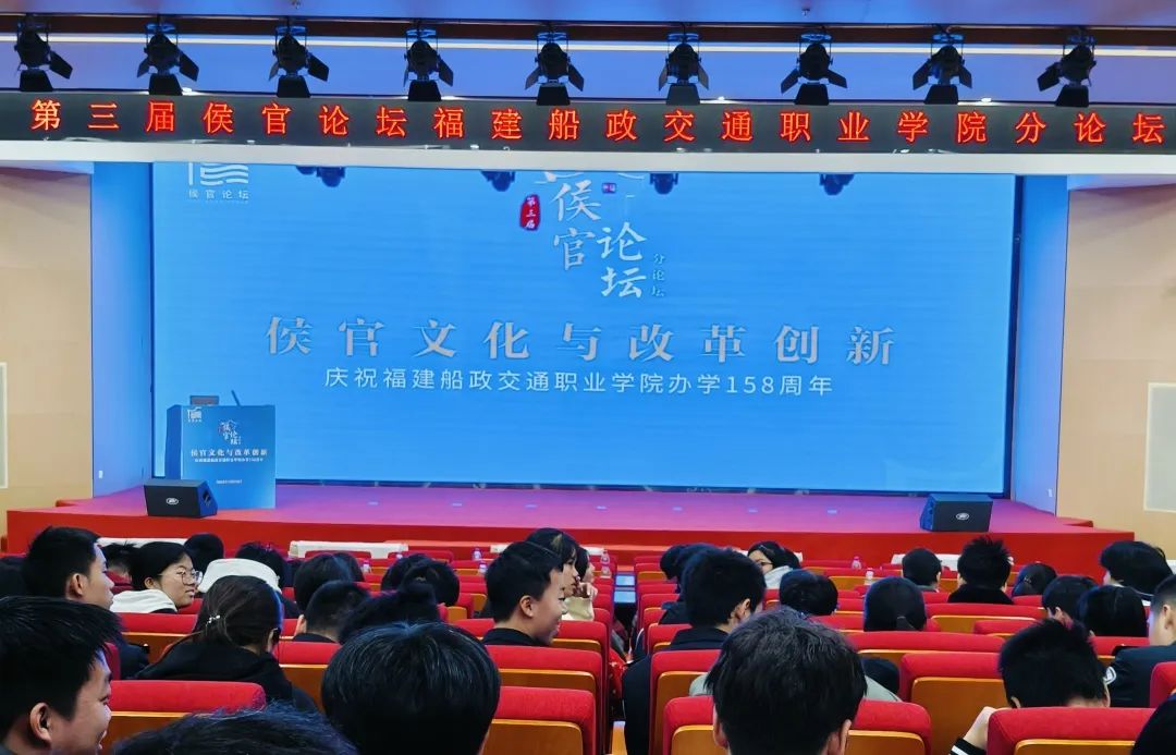 2024年12月19日,福建船政交通职业学院在福船园艺新楼第一学术报告厅开展了主题为“侯官文化与改革创新--福建船政交通职业学院纪念办学158周年活动”的第三届侯官论坛分论坛。我校师生代表受邀参加了此次活动。