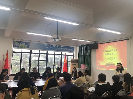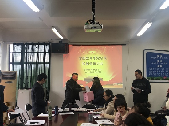 12月27日下午,学前教育系按照校党委统一部署及相关要求,召开全体党员会议进行换届选举,会议由陈孟增副书记主持,党工部瞿欢欢副部长列席指导,学前系全体党员参加。