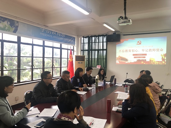 12月27日下午,学前教育系在系406会议室召开"不忘初心、牢记使命"专题党课,系主任吴丽芳以《不忘教育初心、牢记教师使命—推进学前教育事业发展》为题,为全系教职工讲授了一堂内容充实、精神丰富的党课。