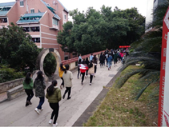 学生从教学a楼撤离到4、5号宿舍楼后方