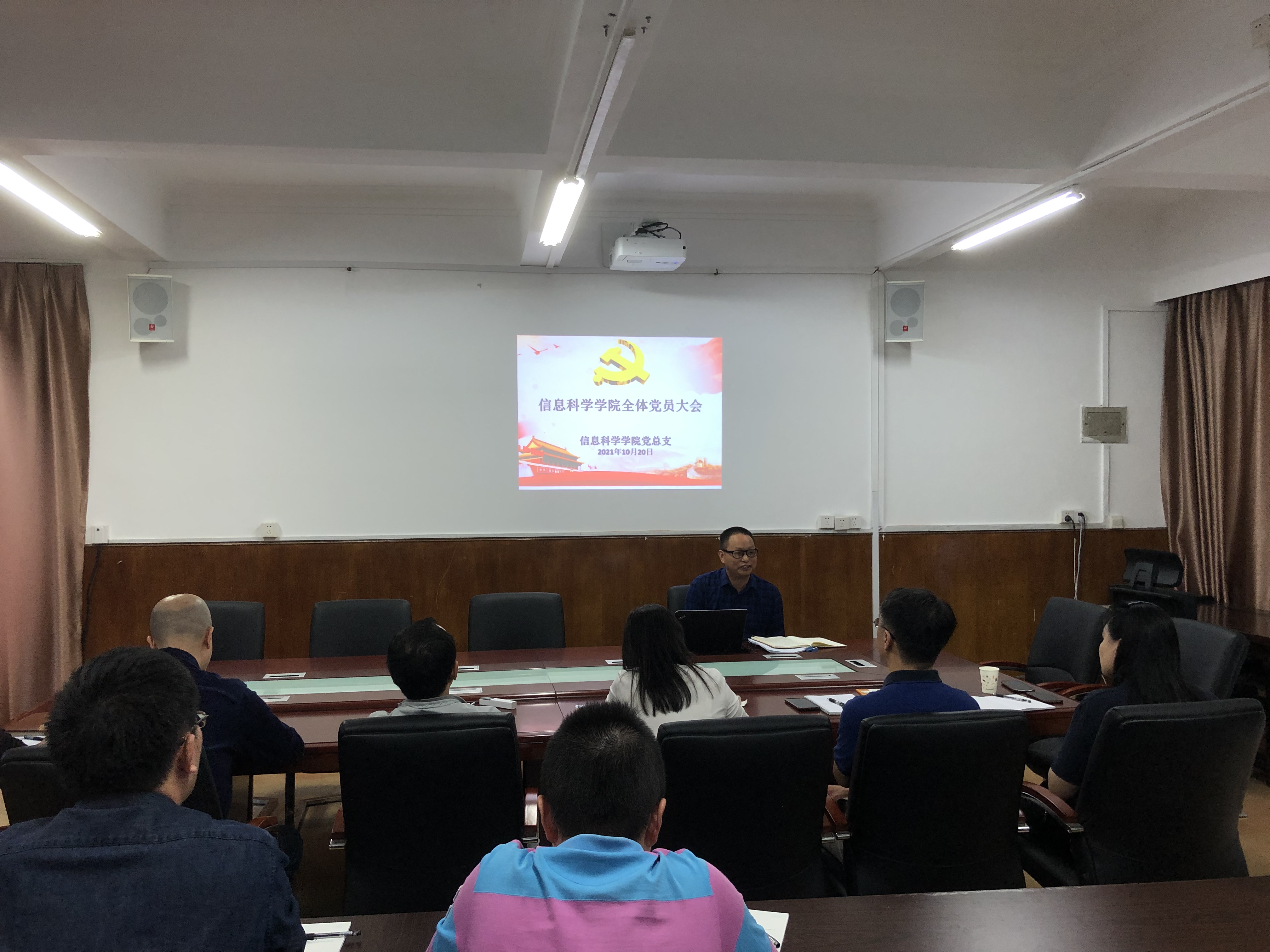 10月20日下午,信息科学学院党总支在院部306会议室召开全体党员大会,会议由余深焰书记主持。