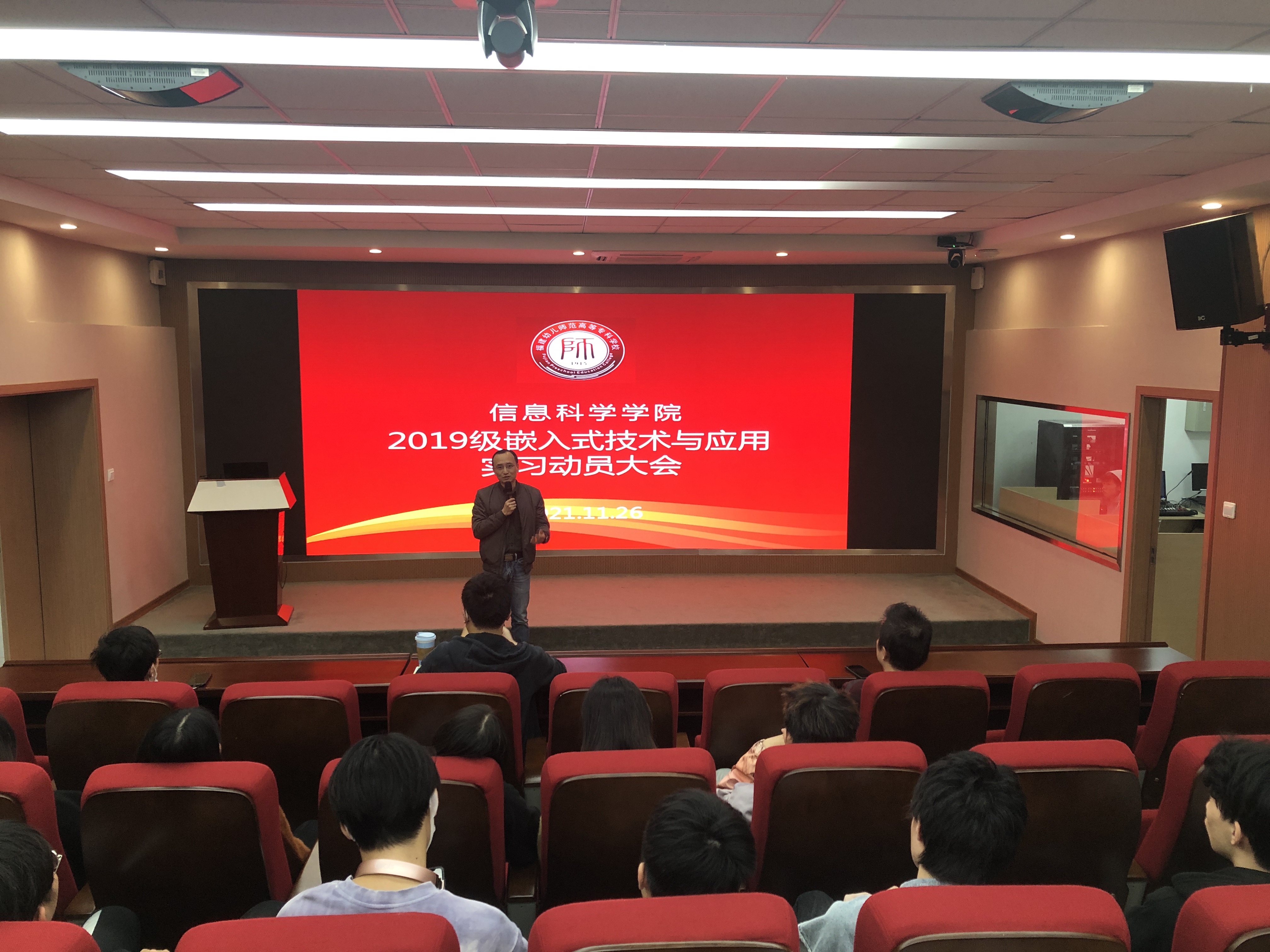11月26日中午,信息科学学院在vr/ar工程应用中心举行2019级嵌入式技术与应用专业实习动员大会。出席本次活动的有信息科学学院院长陈宁华、嵌入式应用技术教研室主任张淳、实践教研室主任卓浩、数字媒体技术教研室主任黄键、嵌入式应用技术教研室全体教师及嵌入式技术与应用专业2019级全体学生。会议由张淳主任主持。