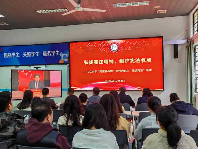 12月4日下午,全校各班级在辅导员的带领下开展了以“大弘扬宪法精神,维护宪法权威”为主题的班会课,同学们认真学习宪法内容,立志成为宪法的忠实崇尚者、自觉遵守者和坚定捍卫者。