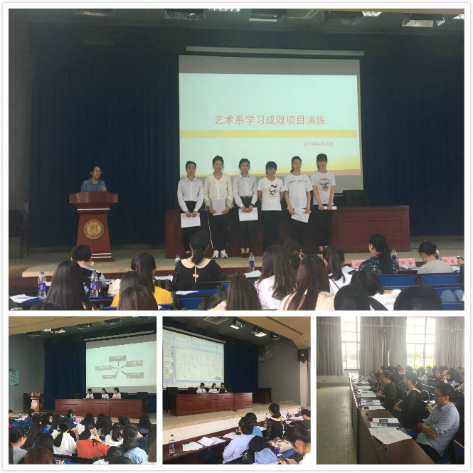 为进一步提高学生学习成效,我系于2018年4月20日15时在图书馆报告厅举办"艺术系学习成效项目演练"活动。出席本场演练的评委老师有:学工部副部长姜琪老师、艺术系颜铭锋老师、王程芳老师、张钰老师、陈锋华老师、谢丽琴老师和傅缘阳老师。