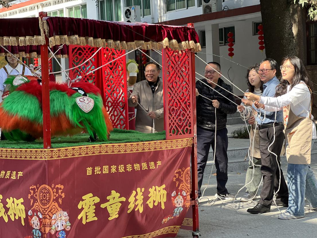 2024年1月3日,艺术教育学院大学生艺术实践工作坊《线狮星工坊》艺术展演活动(校园站)在我校仓山校区榕树广场成功展示。这是一场别开生面的主题作品展示体验活动,我校各级领导、行政人员及师生共同参与了此次展演。活动期间,校党委书记鲍仕梅、校长林伟川等多位领导老师亲自体验了国家级非物质文化遗产“宁德霍童线狮”的打狮表演和文创产品制作,给予了高度评价。
