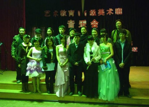 参加本次音乐会的同学都是艺术教育专业美术方向的同学们,在举办毕业画展的同时能举办一场成功的音乐会实属不易。艺术教育专业是福建省高校精品专业,本专业建构了科学的"多能培养、一专发展"的三段式人才培养模式,并制定了"综合性"的培养方案。即在五年学习过程中,一二年级为多能培养普修期,通过多门类艺术专业基础知识技能与宽厚的人文素养的整合性学习,掌握音乐、美术、舞蹈、戏剧的基础知识与技能;三四年级为自选专业主、辅修期,学生根据专业特长选择音乐或美术做为专业能力提升的方向,通过专业选修课程的拓展性和提高性学习,进行"一专发展";第五年为全面整合培养期。综合艺术的四大类---音乐、美术、舞蹈与戏剧既是独立的又是相通的,培养方案中有机地将它们渗透、交织在一起,在普修期与整合期充分地利用其共性,在主、辅修期则充分发展其个性,个性与共性相互渗透。通过五年的整合学习,艺术教育专业学生具有较高的综合素养和专业水平,扎实的专业基础,富于创造性,最终造就了他们"多能一专"的人才素质,为适应社会对综合人才的需求奠定了良好的基础。